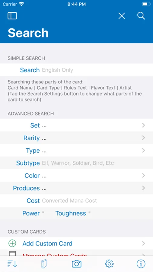- Card information is stored locally so you'll be able to search for cards even when you don't have an Internet connection