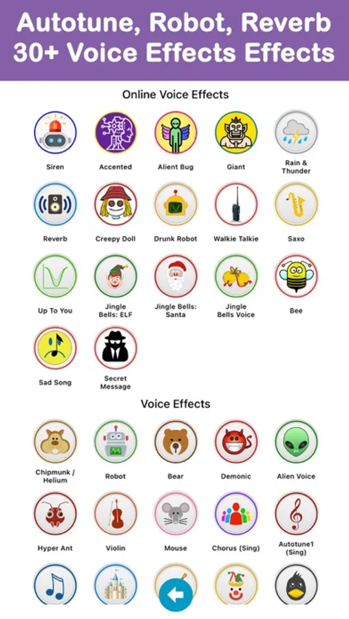 + Different voice effects like Violin, Robot, Helium, Guitar etc