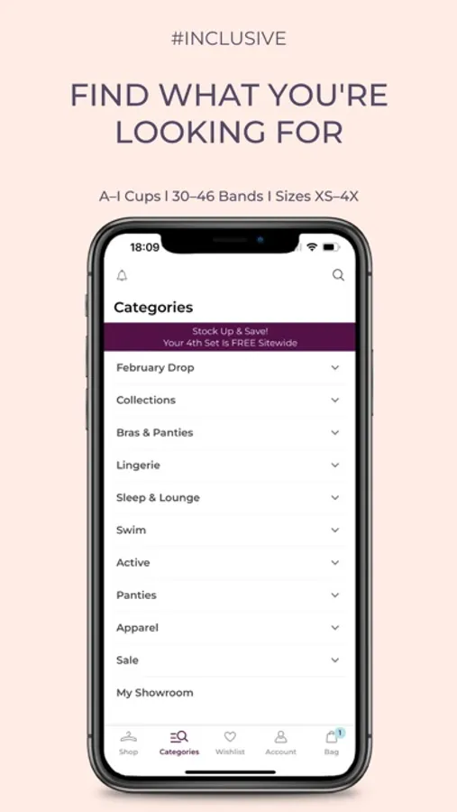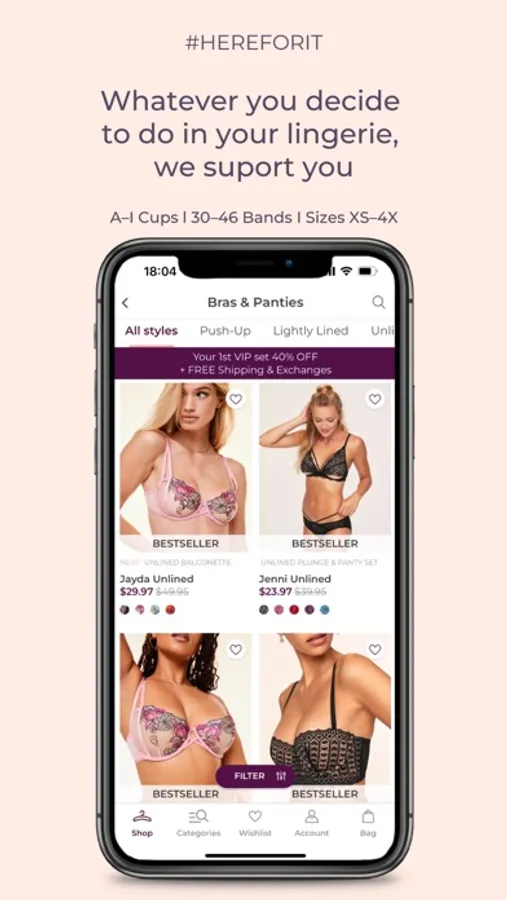 Discover bras in sizes 30A–46G, intimates in XS–4X, and more, right at your fingertips.