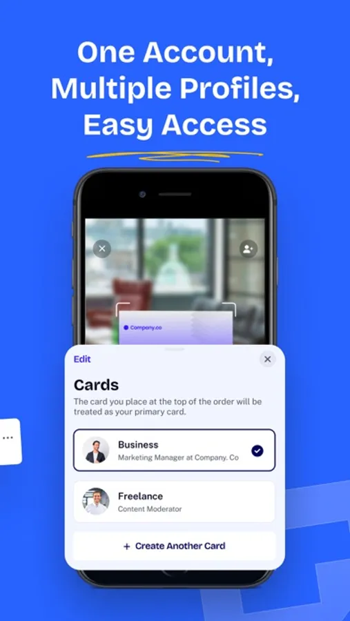 >> Switch profiles quickly between different business cards depending on the context of your meeting or interaction.