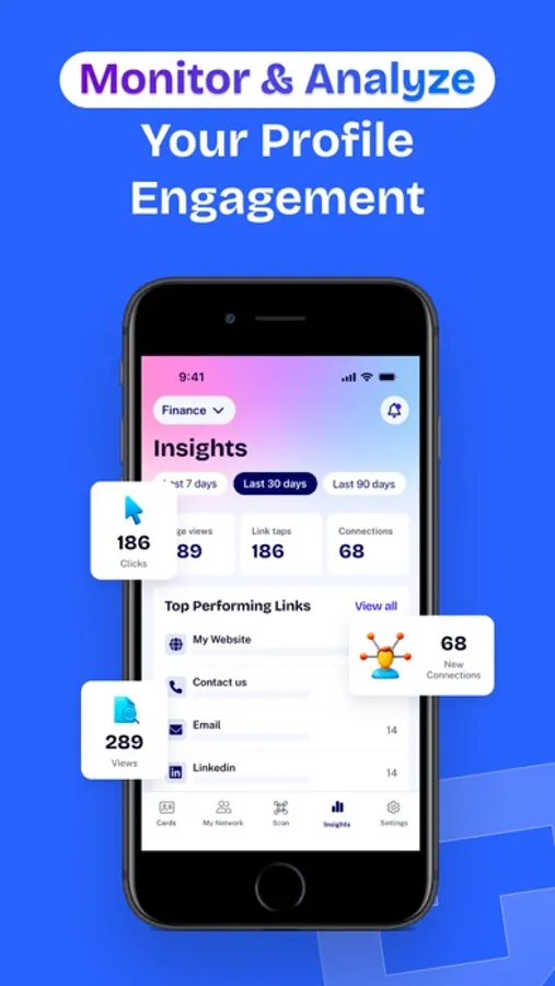 >> Receive detailed performance reports to understand who is viewing your card and how often, helping you to refine your networking strategy.