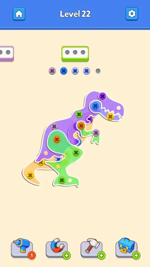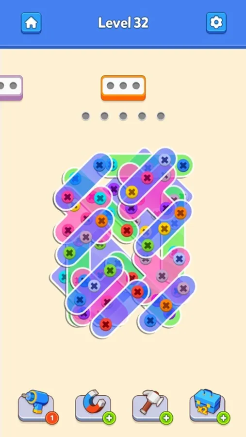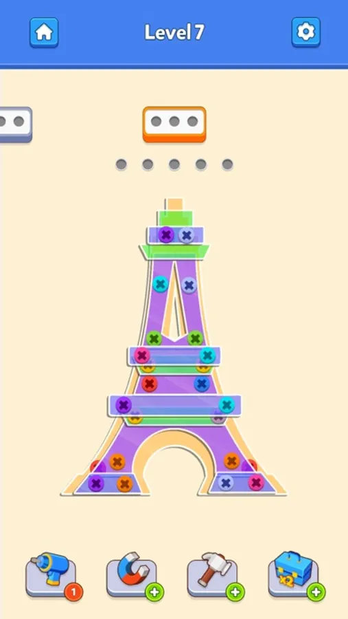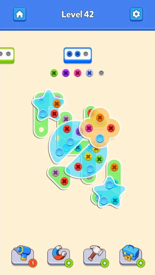 - Fill each screw box with screws of the same color; you need to fill all of them to win.