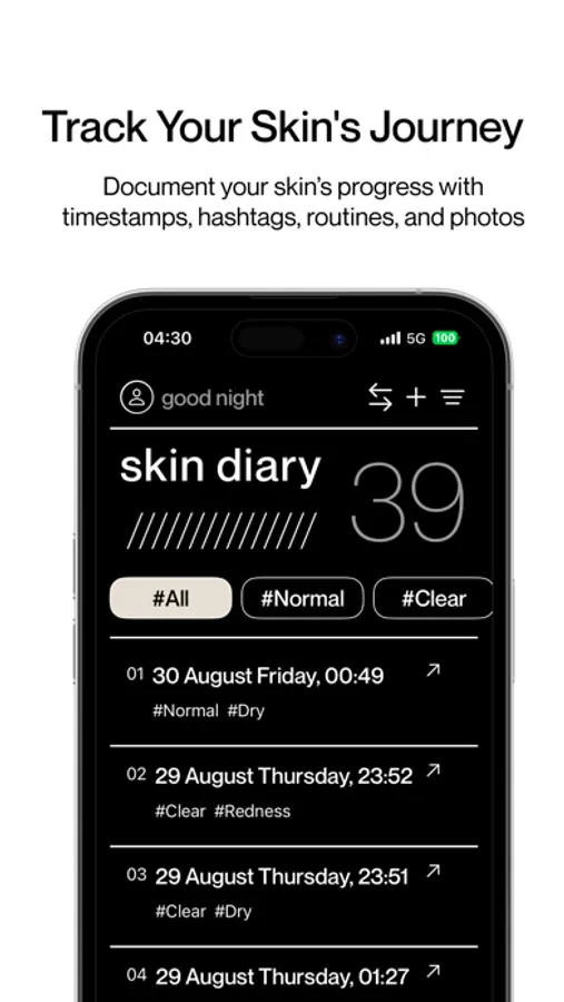 - Customizable Categories: Organize your entries with customizable hashtags for quick and easy filtering. Tailor your diary to your specific skincare concerns and preferences.