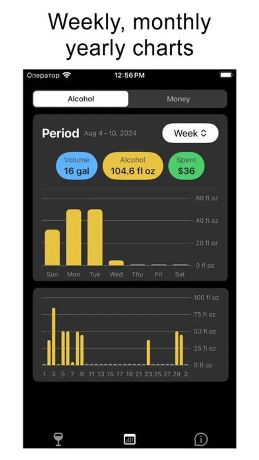 We have developed a useful and pleasant interface with statistics of the amount of alcohol consumed and the amount of money spent on it.