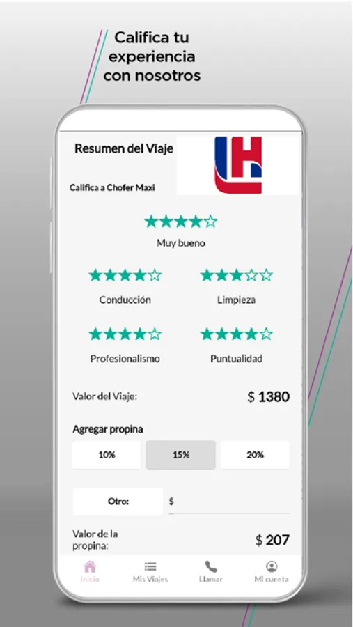 - Califica tu viaje y si lo deseas deja propina al chofer.