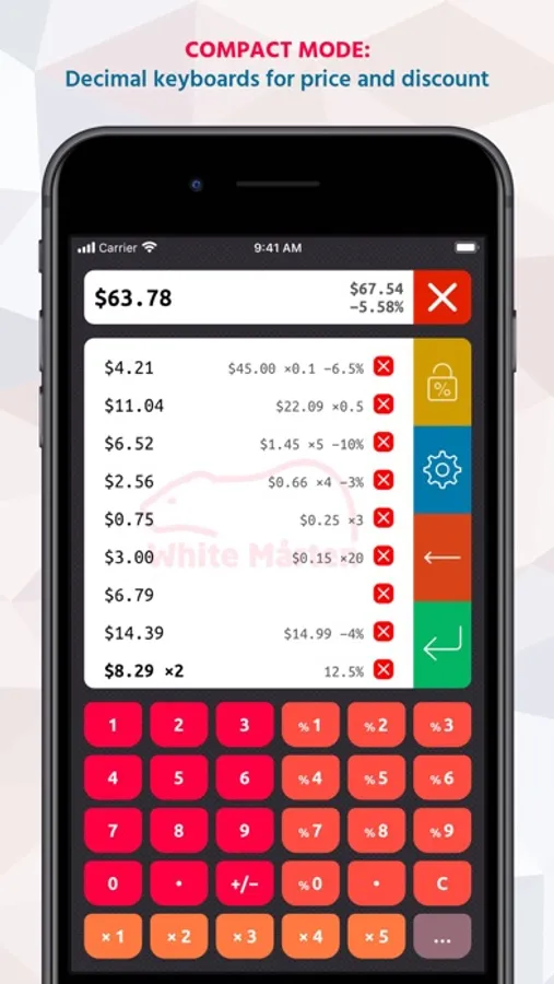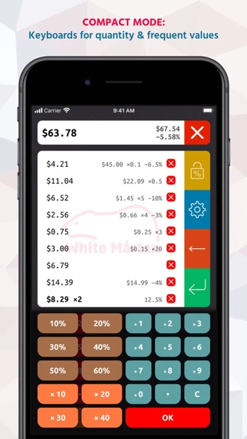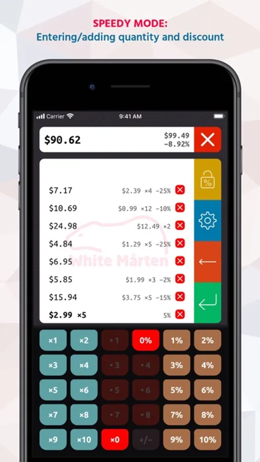 * Separate keyboards for price, discount and quantity still allow for fast input.