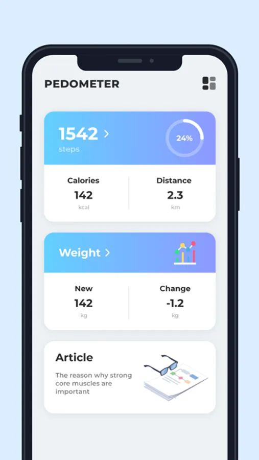 Pedometer - step track helps you count steps accurately every day. Our app can track your daily steps with distance and calories burned. Pedometer - step track will become your personal health assistant