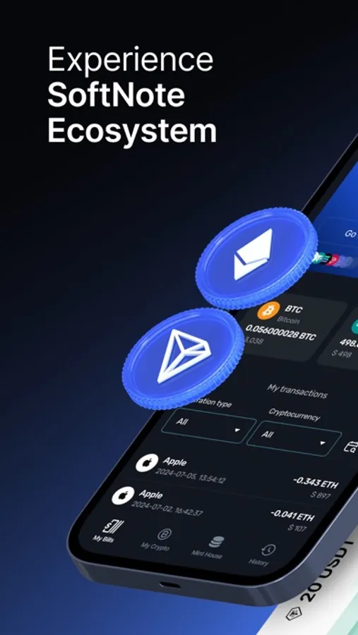 Multi-Currency Support: SoftNotes can be minted using Bitcoin (BTC), Ethereum (ETH), and USDT, with easy management through SoftNote's web wallet and mobile app.