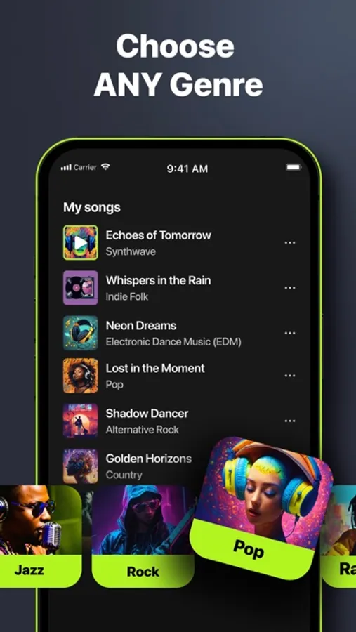 Want your track to sound like a rock ballad or gentle jazz? Choose from a variety of genres, including pop, classical, electronic, and many more. Each melody will be unique.