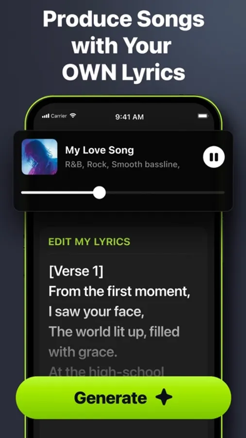 Just type a prompt, mood, or idea, and our powerful AI will instantly compose a musical track for you. You can also write your own lyrics — or let the app generate them based on your prompt. Creating music has never been this easy or inspiring!