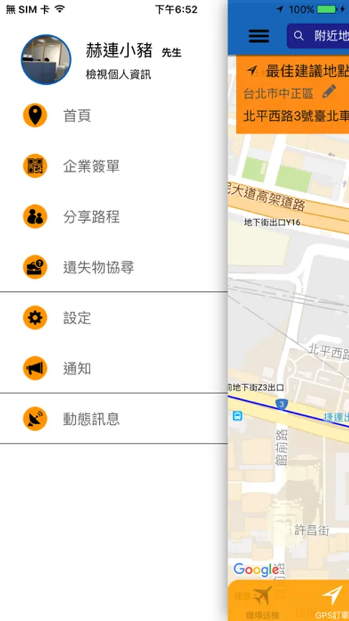 ◎GPS 叫車>以現在所在位置以 GPS 定位來派車,並可以修正地點及位置。