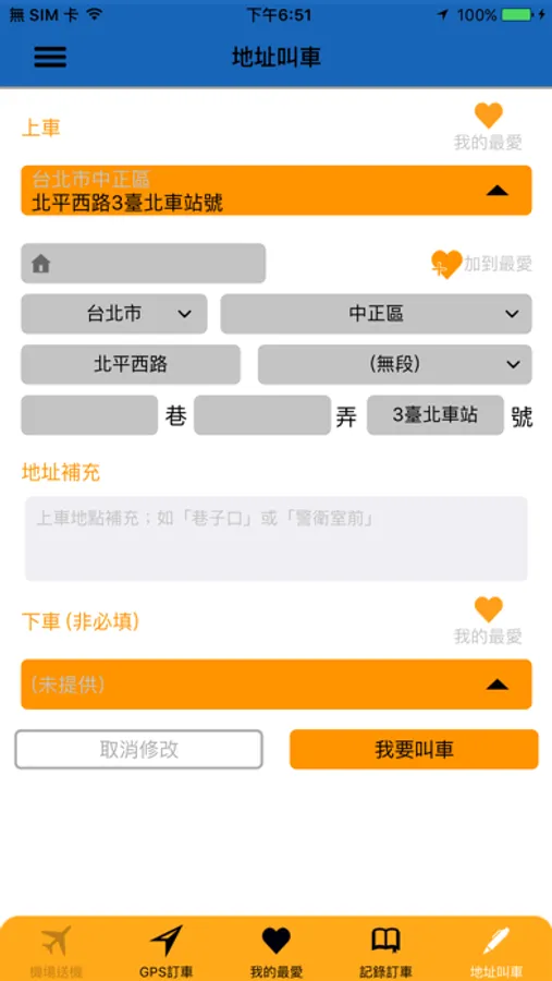 ◎我的最愛>可以記錄幾組最常上車的地址,方便縮短叫車的時間。