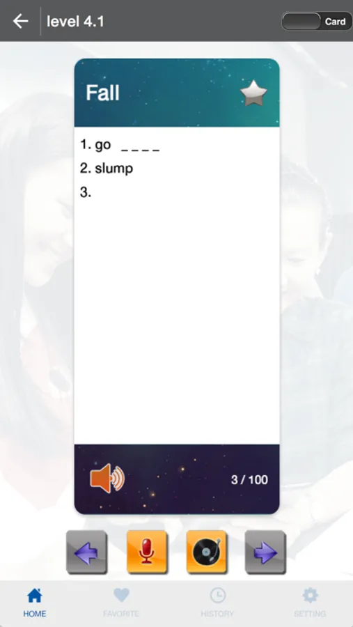 2. “Flashcard mode” display vocabularies in a flashcard with following functions