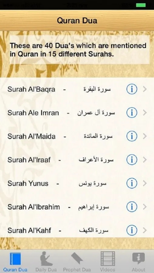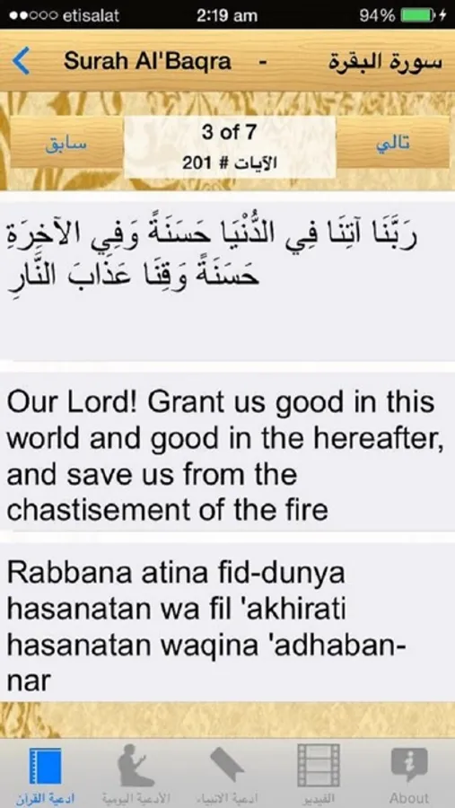 التطبيق كبيرة تسرد مجموعة ضخمة من الصلوات (دعاء) التي يمكن للمستخدمين استخدامها في حياتهم اليومية. الآن يمكنك الاستماع إلى القرآن الكريم دعاء أيضا.