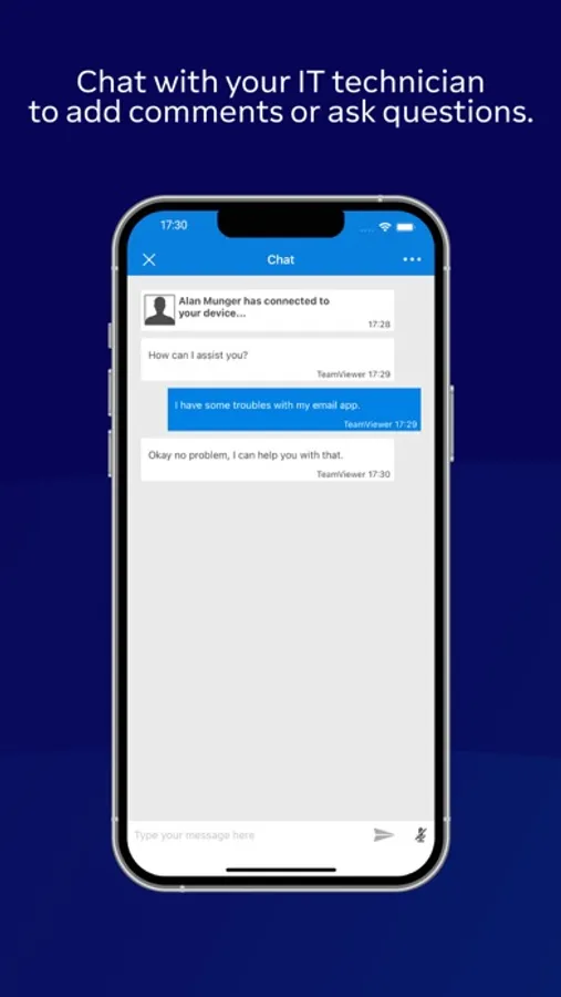 • Technicians can chat, transfer files back and forth, view device information, push settings, and much more.
