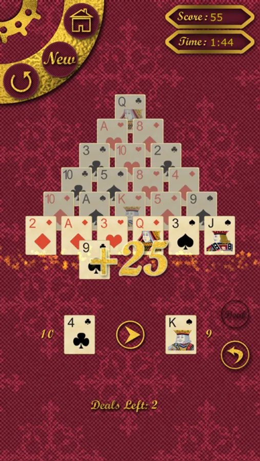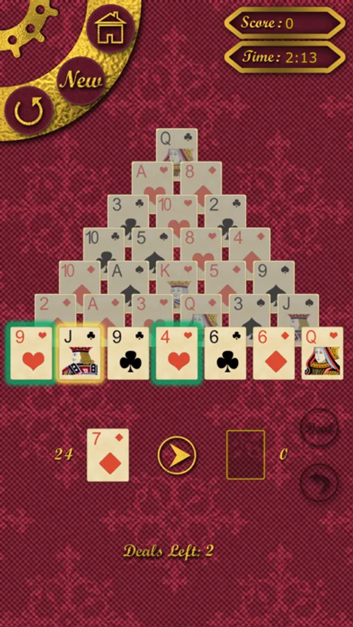 Your goal is to clear the pyramid by finding any two cards that add up to 13.