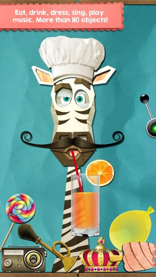 • 4 hilarious animals to play with: zebra, sheep, giraffe, moose
