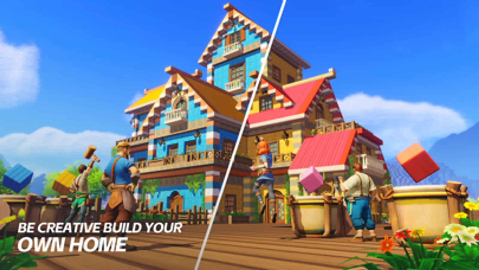 Collect resources by logging, breaking stones, and mining; dozens of items are available for crafting. Freely choose blocks of different colors and types to build your ideal structure according to your preferences. Plant trees, nurture flowers, add furniture, outdoor decorations... Experience the DIY joy of transforming a bare house into a luxurious mansion!