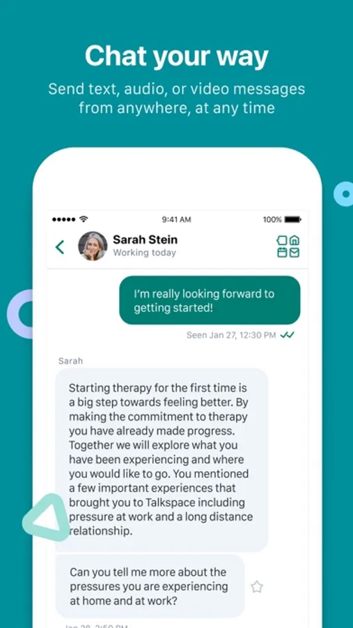 Talkspace is the most convenient and affordable way to improve your mental health. Get matched with a licensed therapist in your state from the comfort of your device, and message via text, audio, and video.