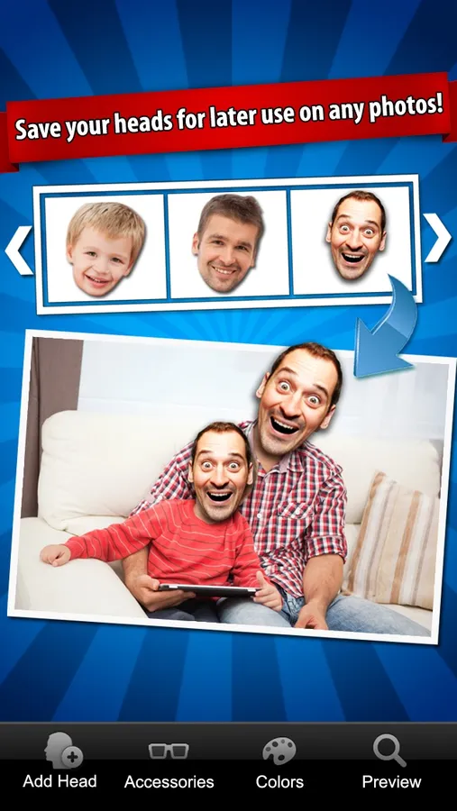 Add accessories (hats, glasses, mustaches, etc.) to any of the characters to enhance the hilarity of your iFunFace creations.