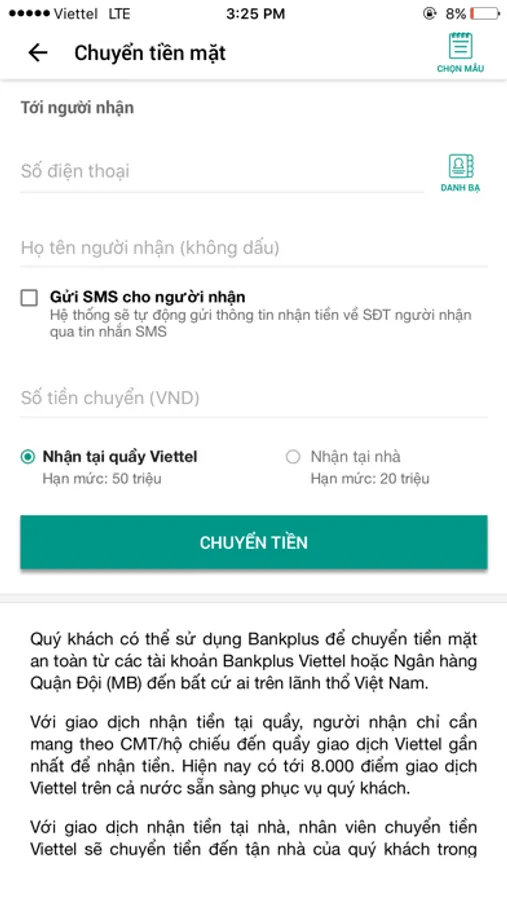 o Chuyển tiền mặt chỉ cần số điện thoại, giao tiền tận tay trong 02 giờ