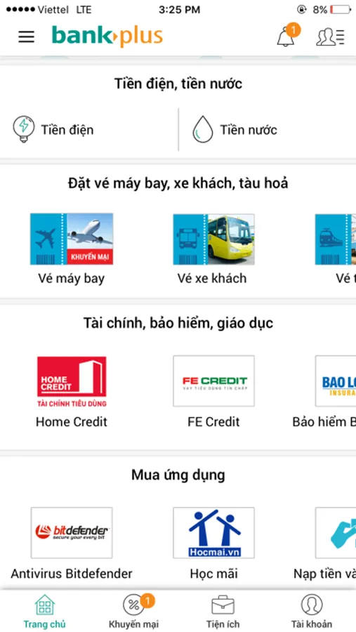 o Thanh toán tự động tiền điện tại 63 tỉnh/ thành phố, tiền nước 15 tỉnh/ thành phố.
