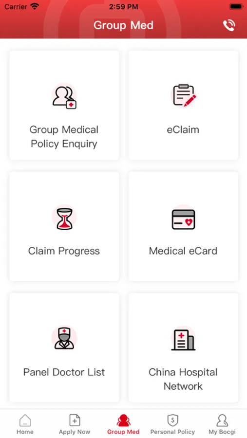 Bank of China Group Insurance Mobile Application provides the following functions for you including Products Information, Quick Apply, Policies Management, Panel Doctor Map and Policy Documents Download etc. Customers can access various information anytime, anywhere, and enjoy personalized services easily.