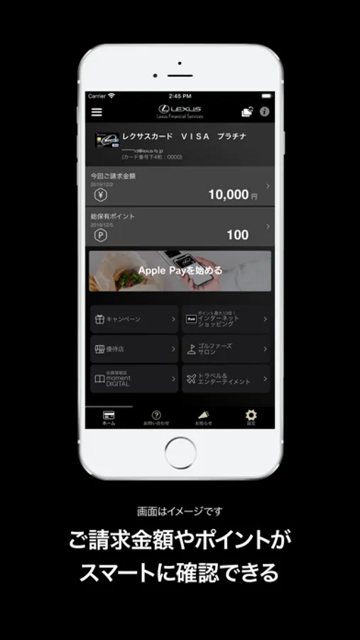 このアプリはトヨタファイナンス株式会社のクレジットカード「レクサスカード」の公式アプリです。