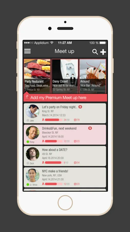 - “Meat up”, our bulletin board for off-line gathering, is the easiest way to meet people and make friends.