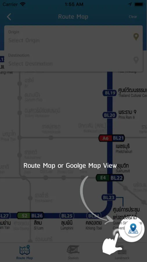 เลือกค้นหาเส้นทางได้ทั้ง MRT สถานีสายสีน้ำเงิน สายสีม่วง และแลนด์มาร์ครอบเส้นทาง MRT
