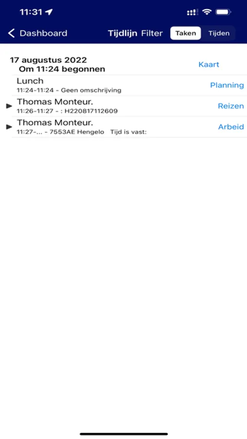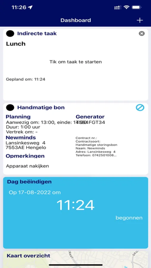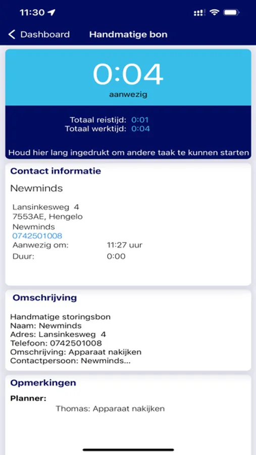 · Je start de werkzaamheden. De app houdt nu zelf de gewerkte uren bij.