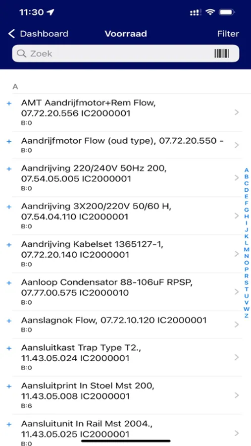 · De voorraad van ieder artikel kun je bekijken voor jouw bus en je kunt zien of een artikel in het centraal magazijn op voorraad is