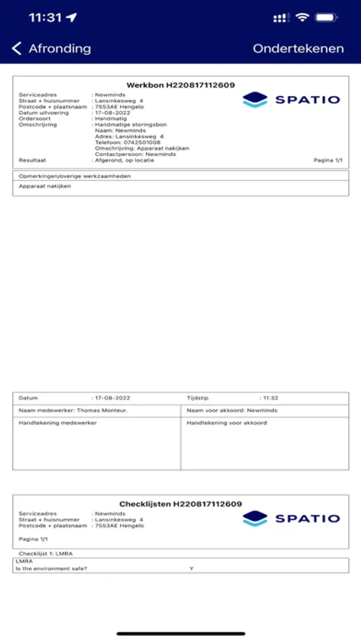 · Je kunt de werkbon laten tekenen door de klant. De bon wordt dan verstuurd naar de klant en naar kantoor.