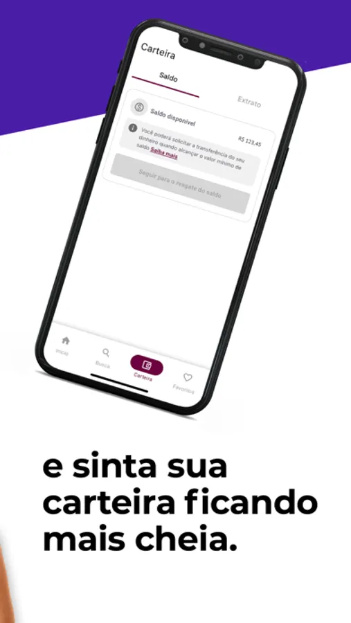 Ao completar R$20 de saldo disponível, você já poderá solicitar o resgate pelo aplicativo e o valor será transferido para a sua conta via PIX. Utilizamos o seu CPF como chave de transferência.
