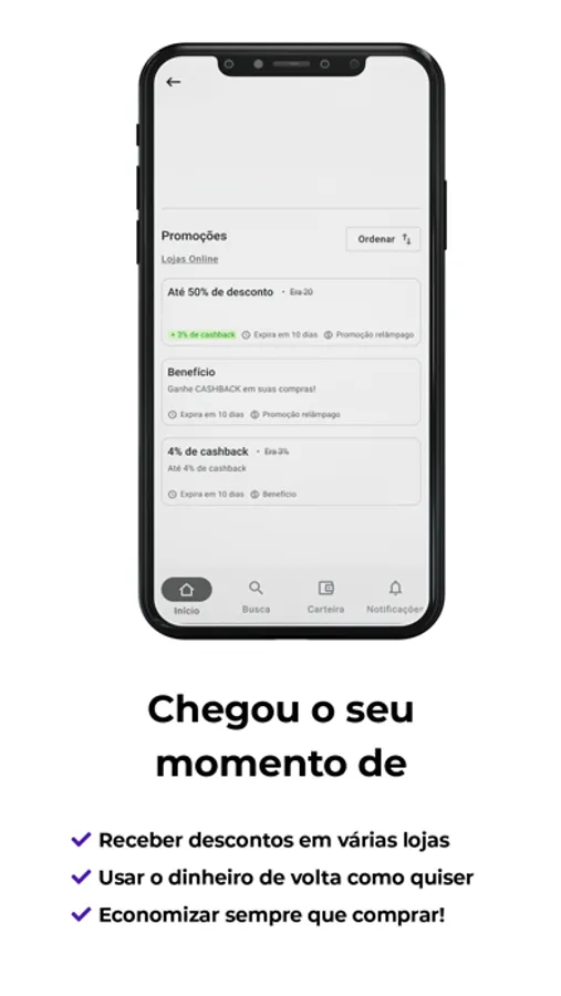 Baixe o app, faça o seu cadastro, procure pela loja desejada, ative a promoção com cashback de sua preferência e faça a compra normalmente no site ou aplicativo da loja. Assim que a marca nos informar sobre a compra, o valor do cashback ficará visível no seu extrato.