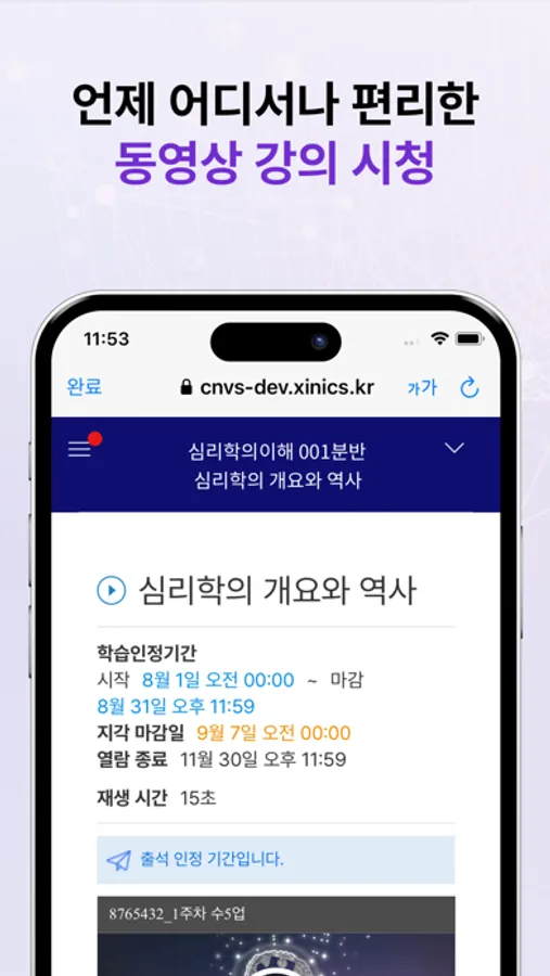 * 모바일 앱을 이용한 동영상 시청,진도 체크, 출결 상태 확인