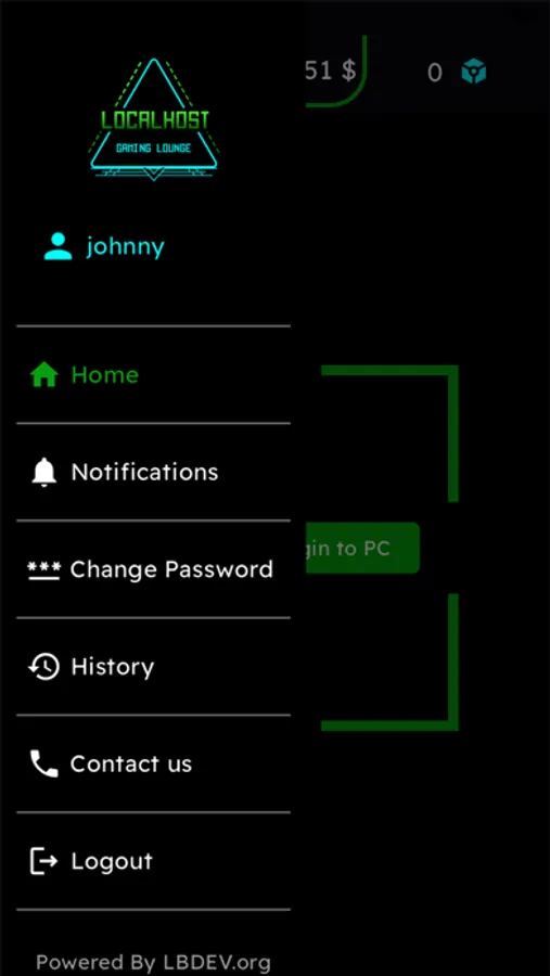 LOCALHOST Gaming Lounge app is used by members to login to their account and check their account activity and balance.