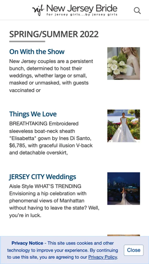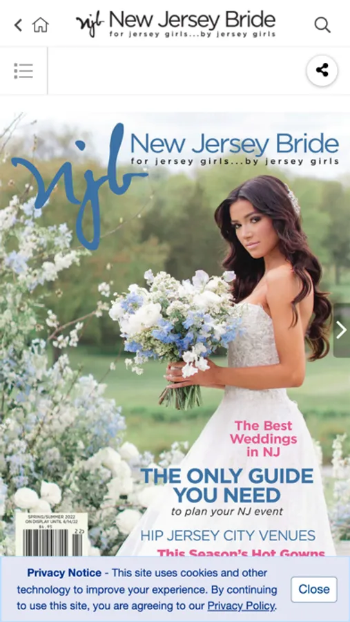 New Jersey Bride provides everything you need to plan your New Jersey wedding. Get expert advice from the complete magazine wherever and whenever you want access. Whether you're looking for a location, photographer, bridal gown, band, invitations, flowers, catering, rings, cakes, wedding planner or any of the other special details needed to complete your big day, we’ve got you covered. New Jersey Bride is the go-to source for brides on the go.