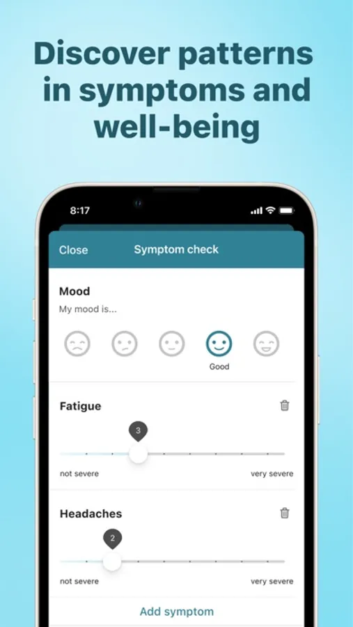 A symptom and mood journal allows you to log both your physical and mental wellbeing, so you can track your treatment progress over time. The information from all these features can be compiled into a comprehensive health report emailed to you in PDF format, making it easy to share with your doctor or pharmacist.