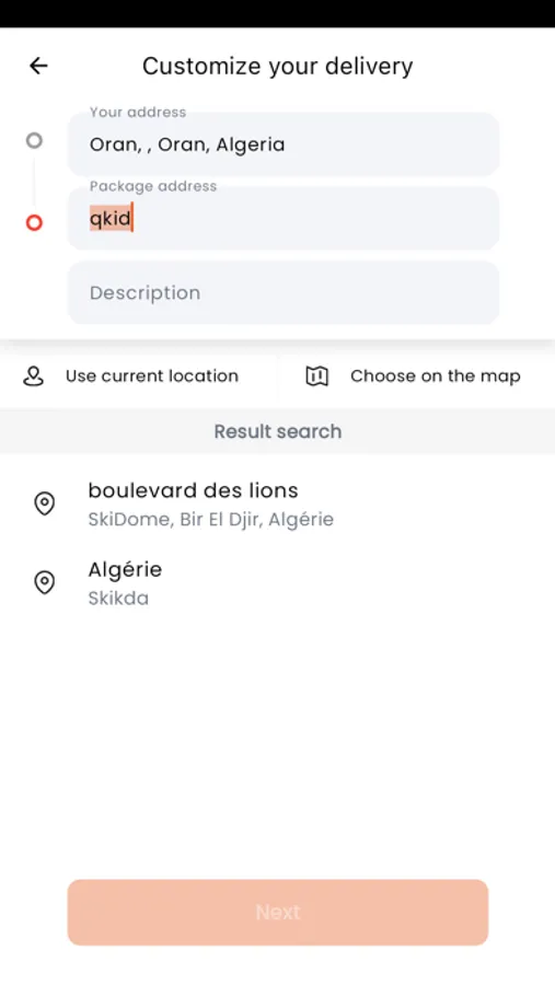 Configuration Facile des Colis : Sélectionnez simplement le lieu de prise en charge du colis et votre adresse. Ajoutez une description pour le coursier afin de garantir que votre colis est manipulé avec soin.