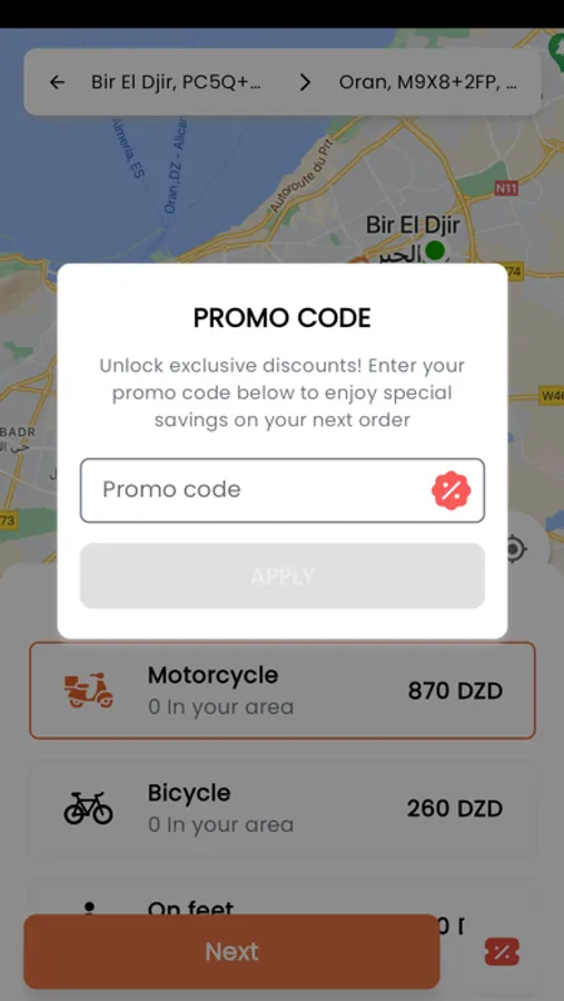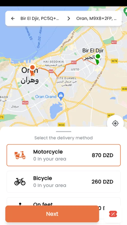 Options de Livraison Flexibles : Choisissez le type de coursier qui convient le mieux à votre livraison—à pied, en moto, à vélo, ou en voiture.