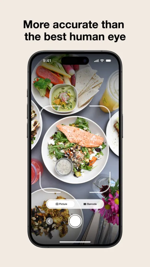 Snap a quick photo or describe your food in natural language. Or scan a barcode and search our extensive database.