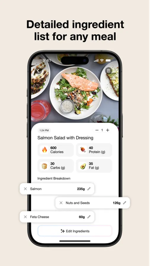 Comprehensive Nutritional Insights: Track the ingredients in your food and get a breakdown of macronutrients such as proteins, carbs, fats, and fiber. Stay informed and balanced with our AI-driven Calorie Calculator, helping you achieve your diet and fitness goals.