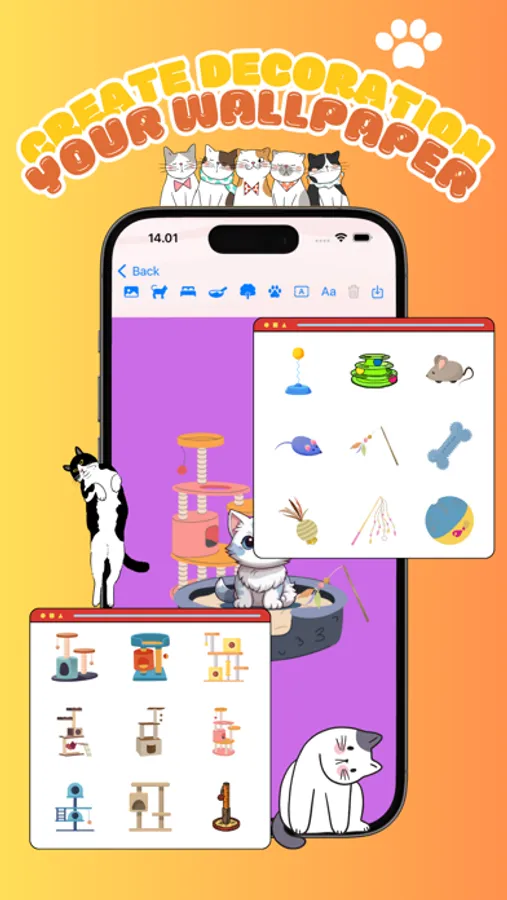 * Design with Purr-sonality: Embellish your cats with quirky expressions, playful toys, and cozy nooks. Each wallpaper becomes a unique reflection of your creativity.