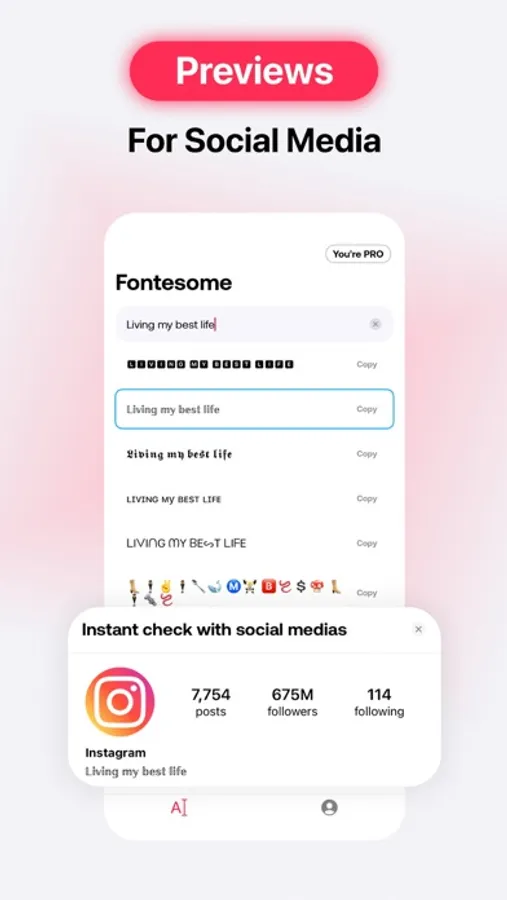 Fontesome is not just another font app. Make your social media profiles pop with our font generator, or send stylish messages to your friends. Turn heads, stand out, and get creative! Use Fontesome for:
