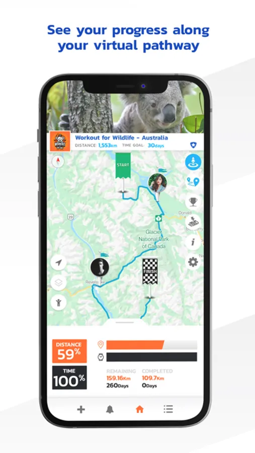 My Virtual Mission lets you track your progress towards completing an outrageous virtual journey. You can even raise funds for your favorite charity or own cause along your way (optional).