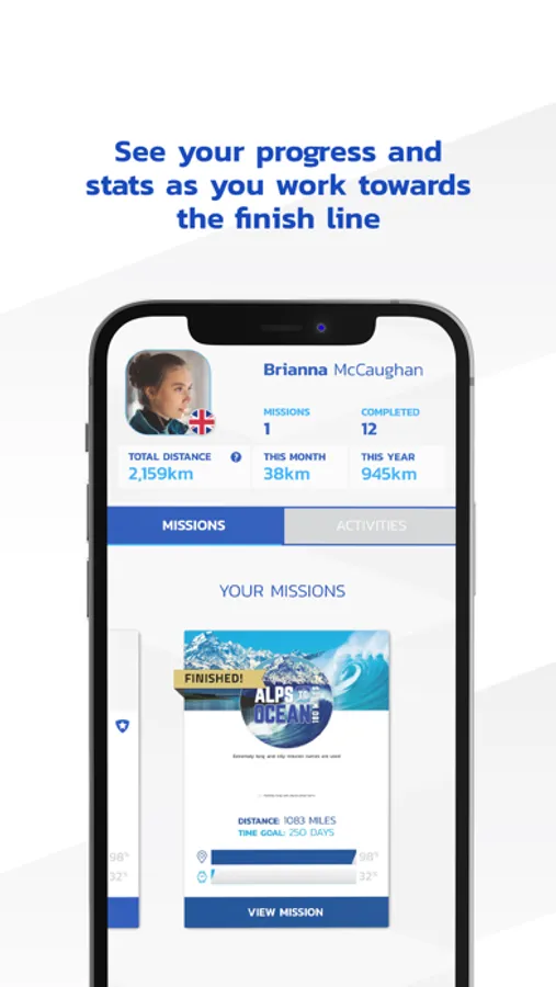 ⊕ Share your mission with friends and follow others as you progress towards your goal.