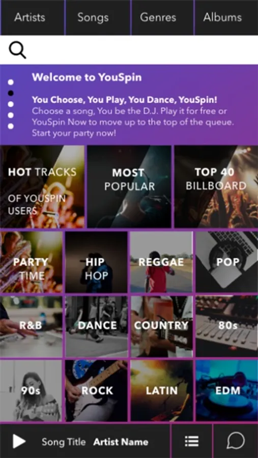 YouSpin is a socially interactive virtual jukebox application, that allows customers in YouSpin locations to vote on music, play songs, and chat with others in the bar or club. You can create your own party experience from your fingertips.