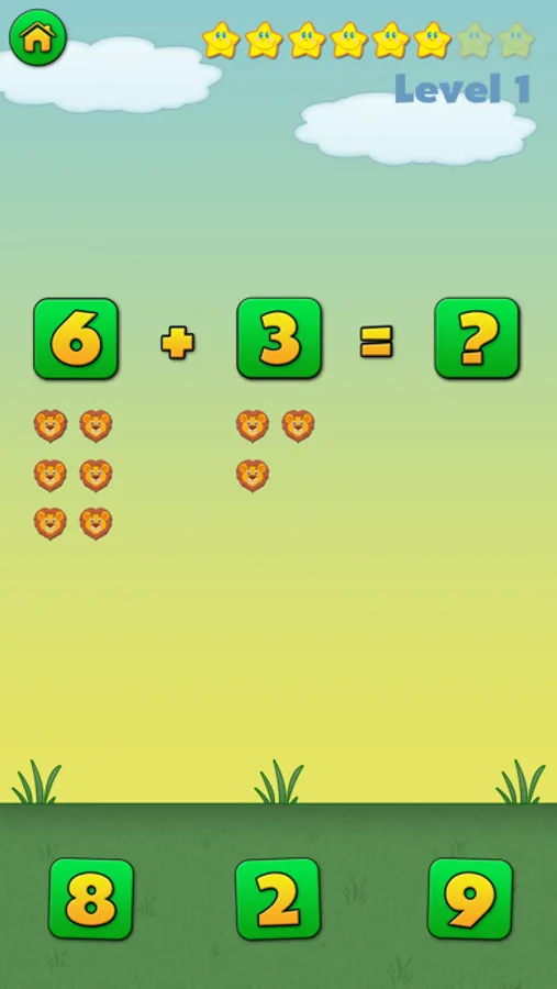 Visual Aid - numbers are represented with different animals, which makes counting, adding and subtracting easier. Can be turned off.