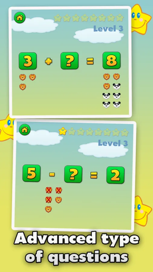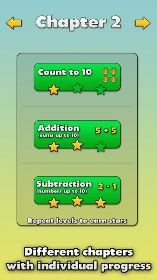 Reward system - Repeating the questions rewards the child with an extra star and ensures more practice, which leads to better skills.